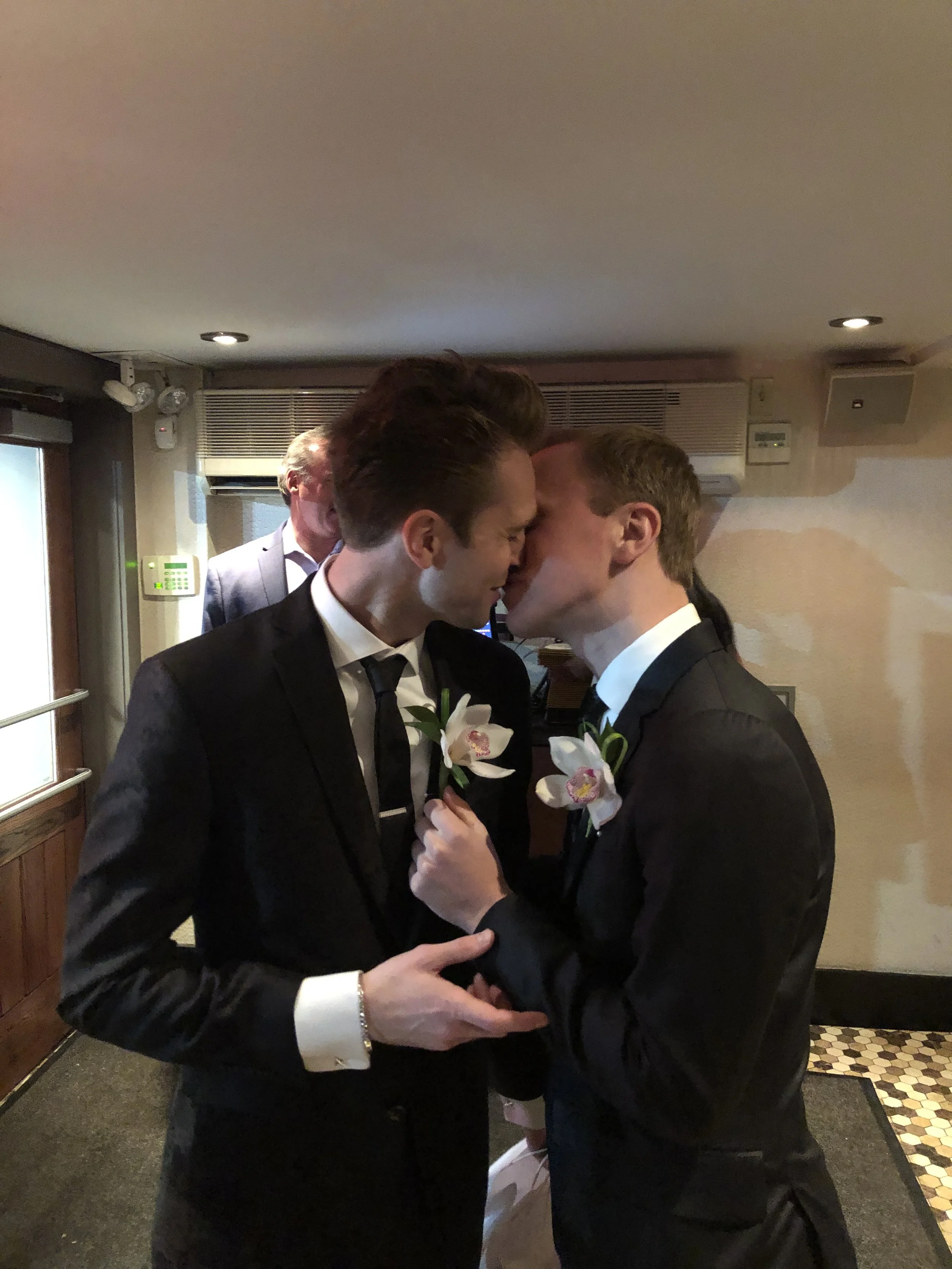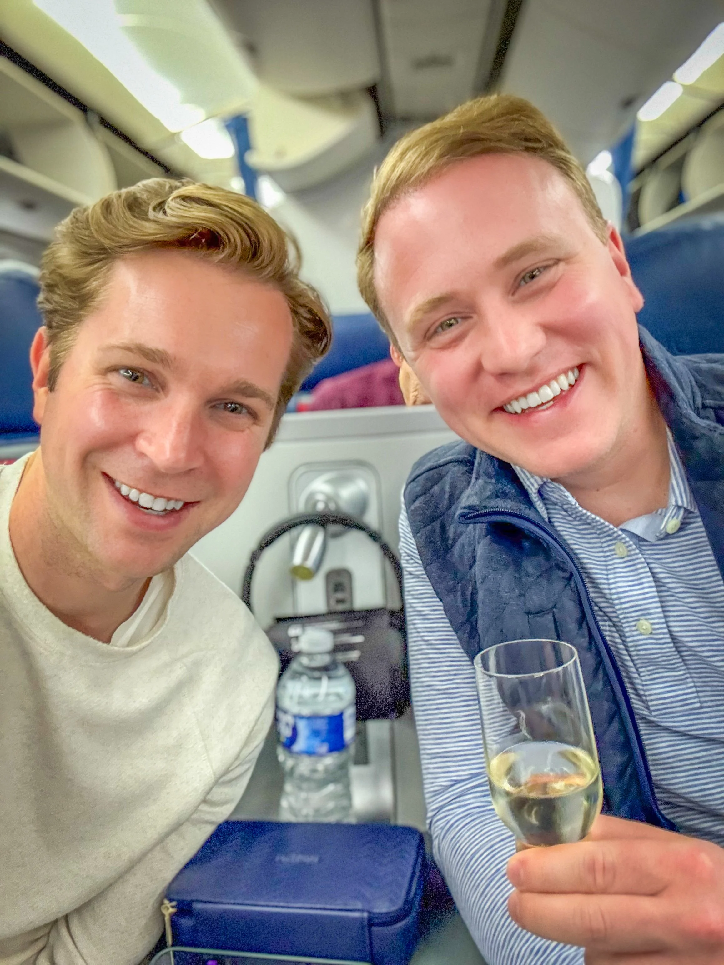 Chris and Joe’s love story began like something out of a movie—on an airplane. It was one of those last-minute decisions that would change their lives forever. Both had booked the Delta flight only days before departure, and by chance, they were upgraded to first class, seated next to each other. During the flight, Joe accidentally drank Chris’s water, their eyes met, and the laughter hasn’t stopped since. Little did they know, that innocent mix-up was the beginning of a lifelong journey together.